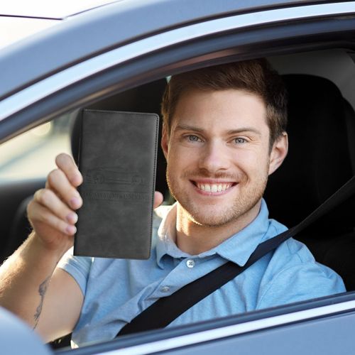Vehicle Registration and Insurance Card Holder — Leather, Magnetic Closure — Suitable for Cars, Driver's Licenses, Documents, Trucks, Motorcycles, Boats, etc. — Unisex — Gray