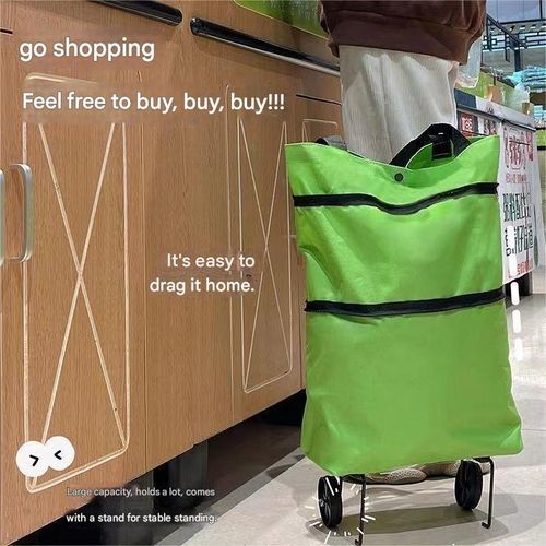 Portable foldable shopping cart with wheels, lightweight shopping bag, hand-held and pull-along backpack-style trolley, durable and large-capacity for home use.